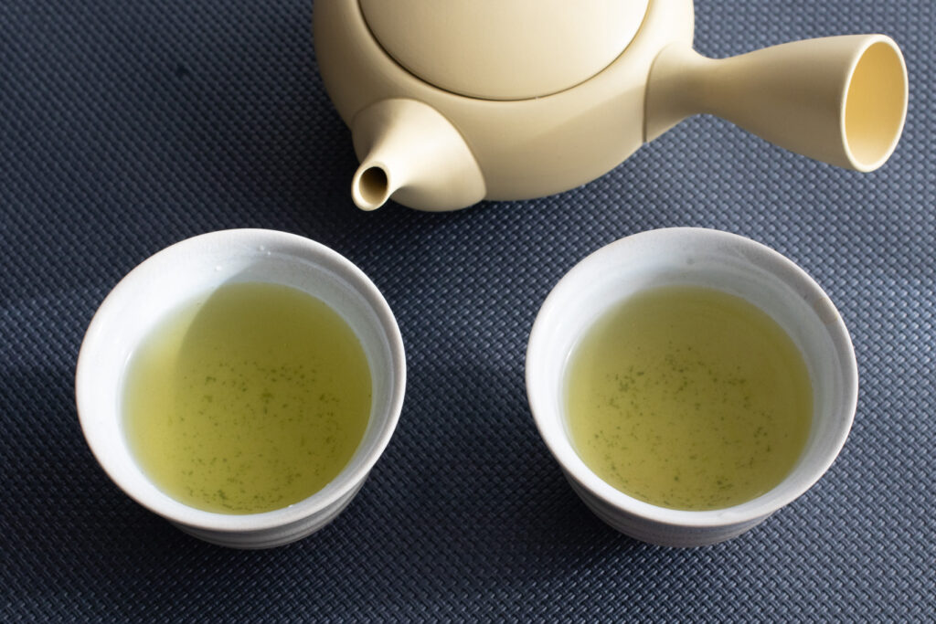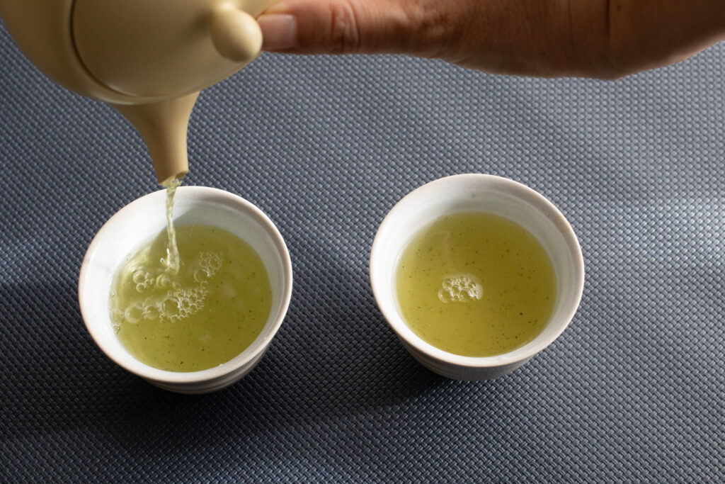 70℃で淹れた煎茶は、注ぐことでさらに温度が下がって飲みやすくなっています。