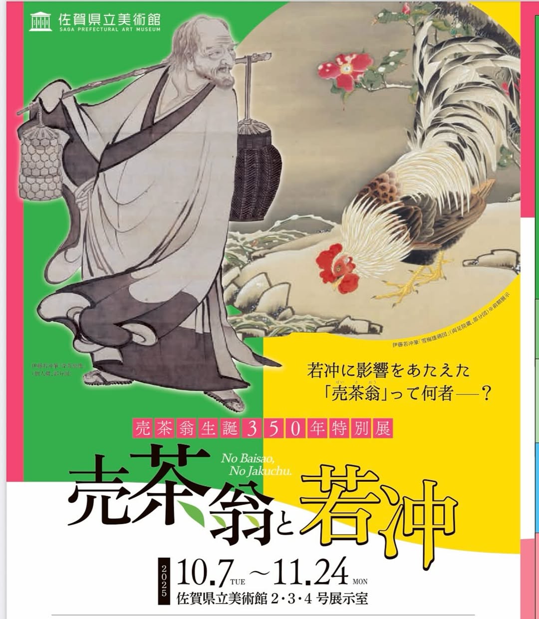 売茶翁生誕3 5 0 年に合わせて生まれ故郷佐賀で開催する今回の特別展では、売茶翁と若冲の関連作を中心に約1 3 0 点を展示。九州最大規模の若冲作品をそろえるほか、売茶翁から影響を受けたとされる池大雅や田能村竹田などの作品も紹介します。