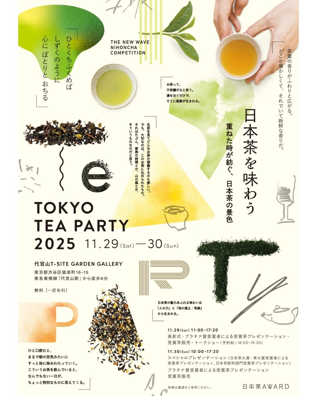 日本茶AWARD 2025 で授与いたしましたプラチナ賞受賞茶とプラチナ賞受賞者のご紹介をメインに今年もTOKYO TEA PARTY 2025を開催いたします。